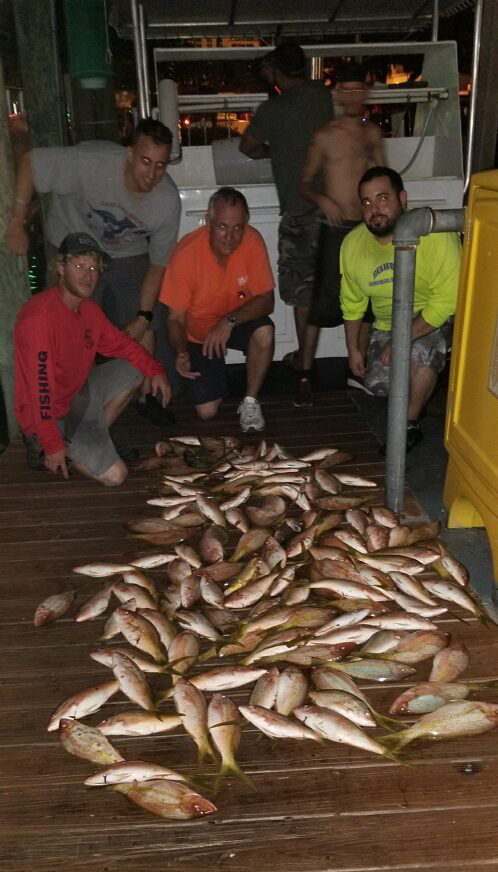 Night fishing is just plain ole’ awesome this month. Snappers, snappers and more snappers are the catch on our night trips. The snapper species we target at night are the yellowtail snapper and the mangrove snappers. We do get a few of the bigger mutton snappers as well. But the sheer numbers of the yellowtail and mangroves that we’re catching at night is just incredible. This year has been better snapper fishing than I have seen in quite a few years. I love to see the bite so good because we have slow fishing sometimes in Fort Lauderdale, where it’s tough to catch anything. Fortunately for us, the bite has been really strong, so almost every trip is a good catch. We’re having nights where 3 deckhands have to clean fish for over an hour after the trip because we caught so many. Night anchor trips are also yielding a some sharks, cobia, bluefish and barracuda too.